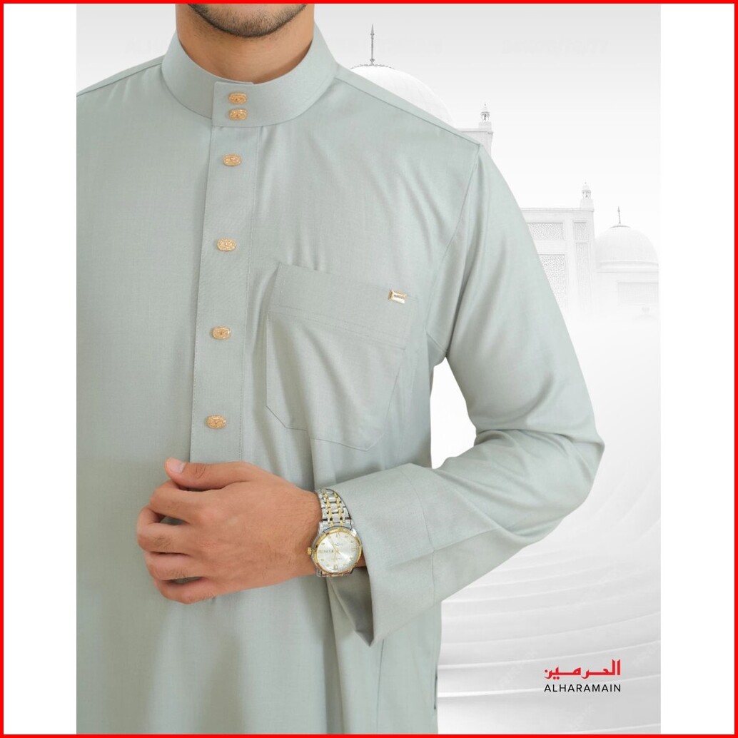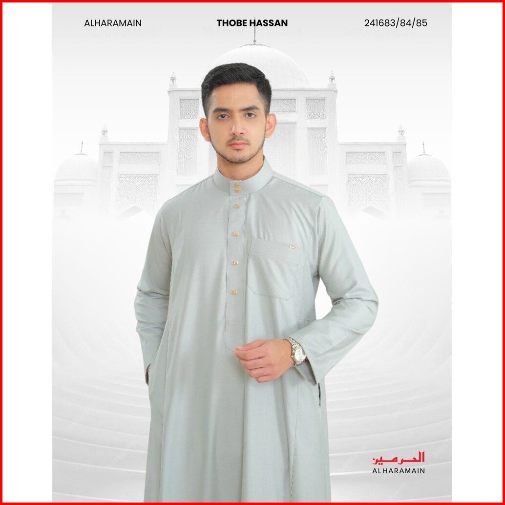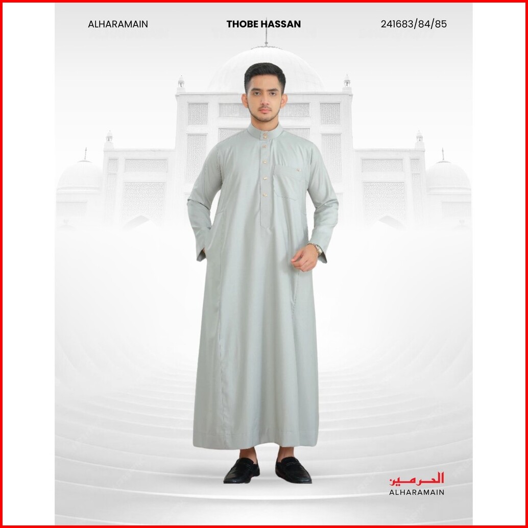 Al Haramain Series Semi Wol Thobe Hassan Jubah Gamis Pria Dewasa 241683 84 85 Cream Silver Biru Keabuan