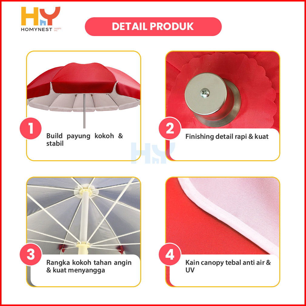 Homynest Payung Jualan Jumbo 280 Cm Payung Tenda Dagang Lapak Bazar Cafe Anti Uv