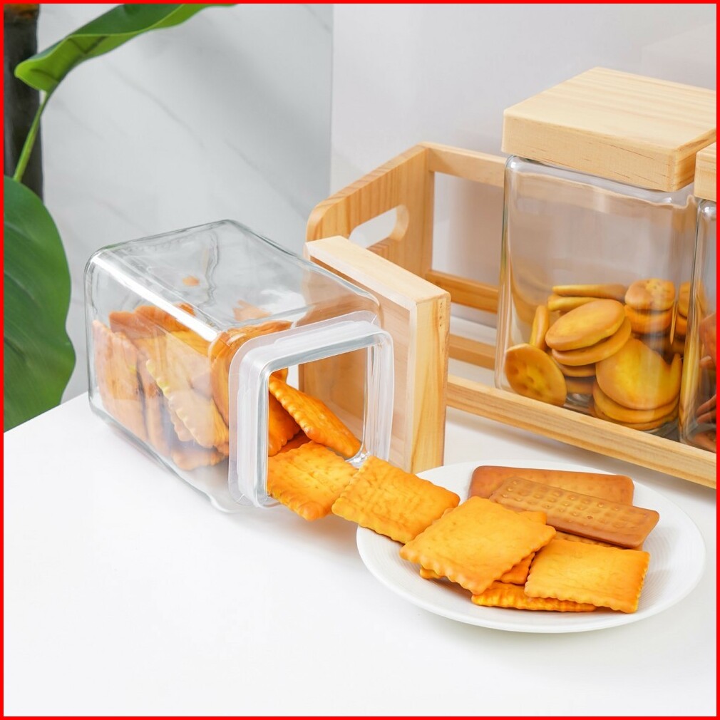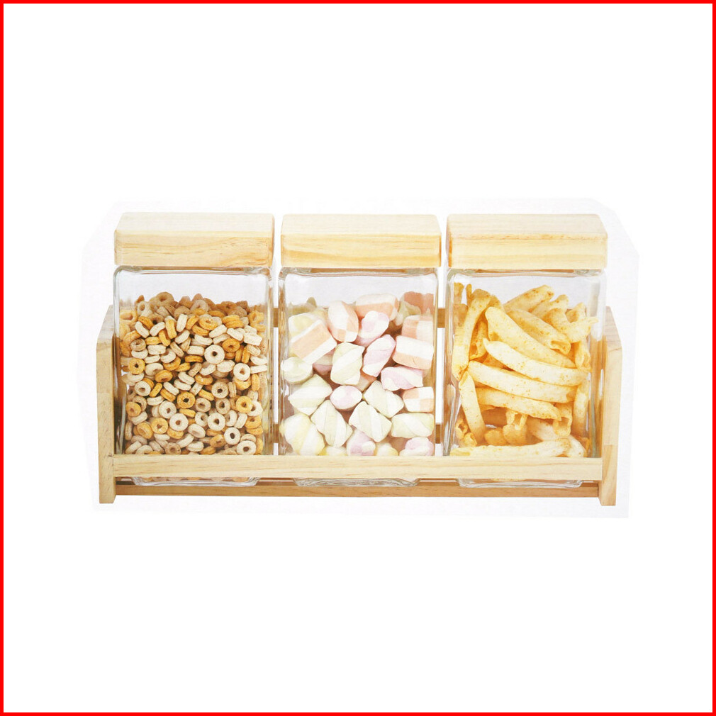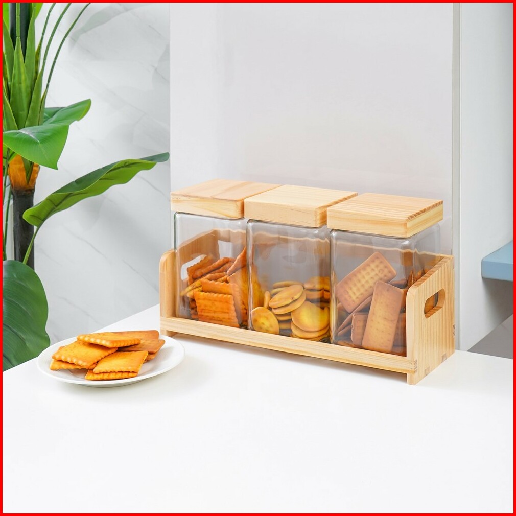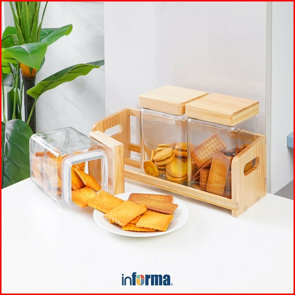 Informa Carley Set 3 Pcs Stoples Kaca Dengan Rak Jar Tempat Simpan Snack Dan Permen Setoples Toples Beling Serbaguna Per