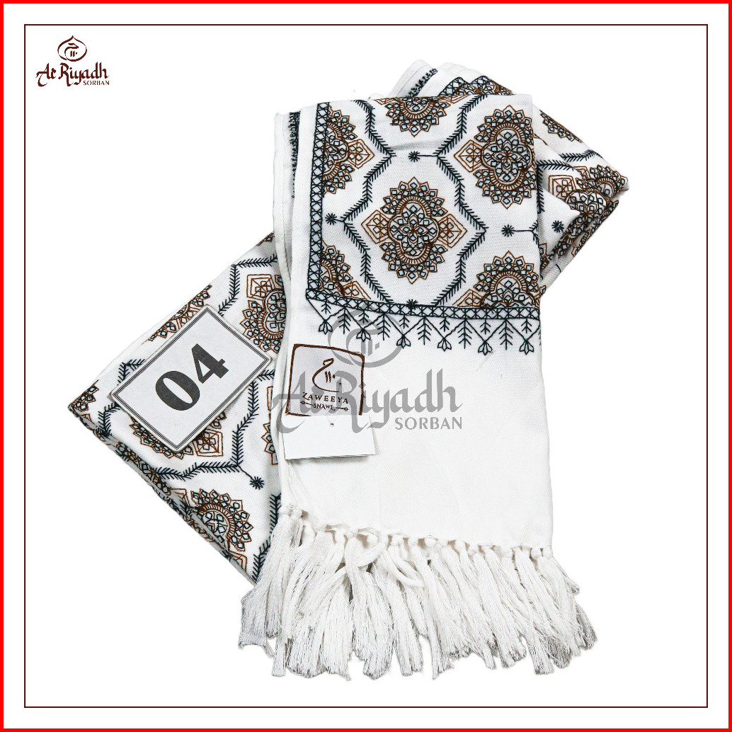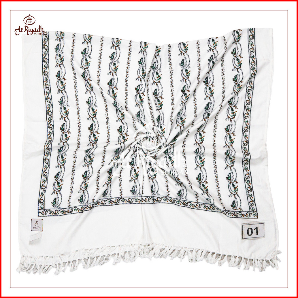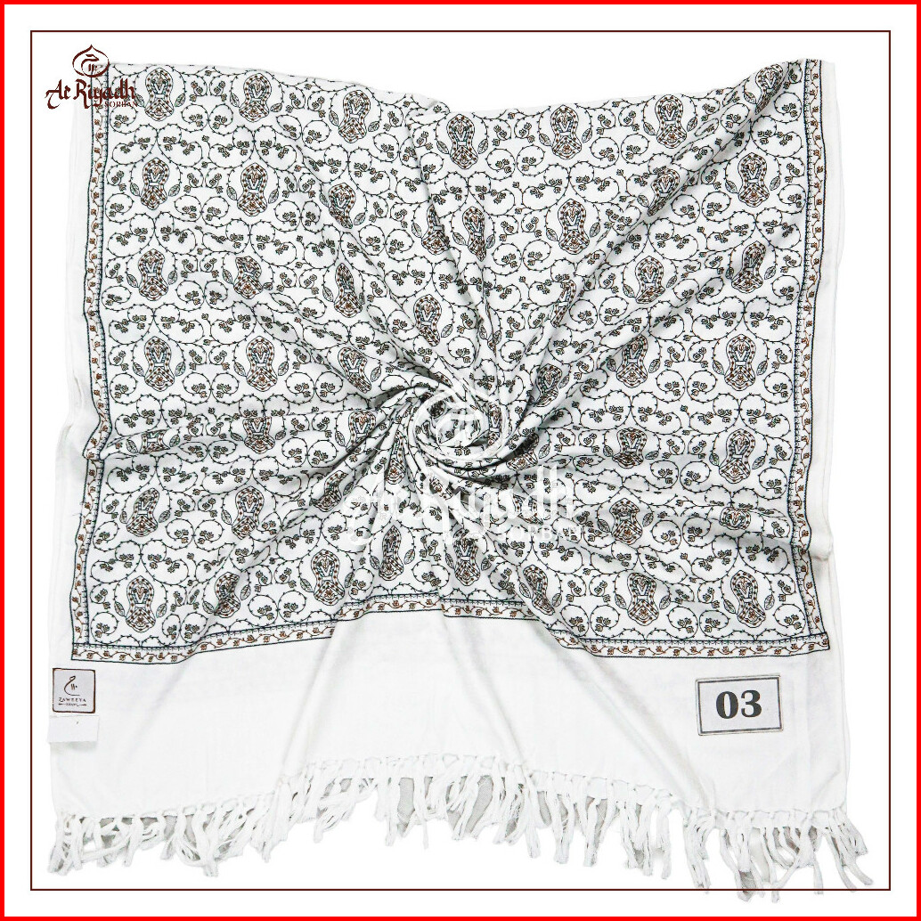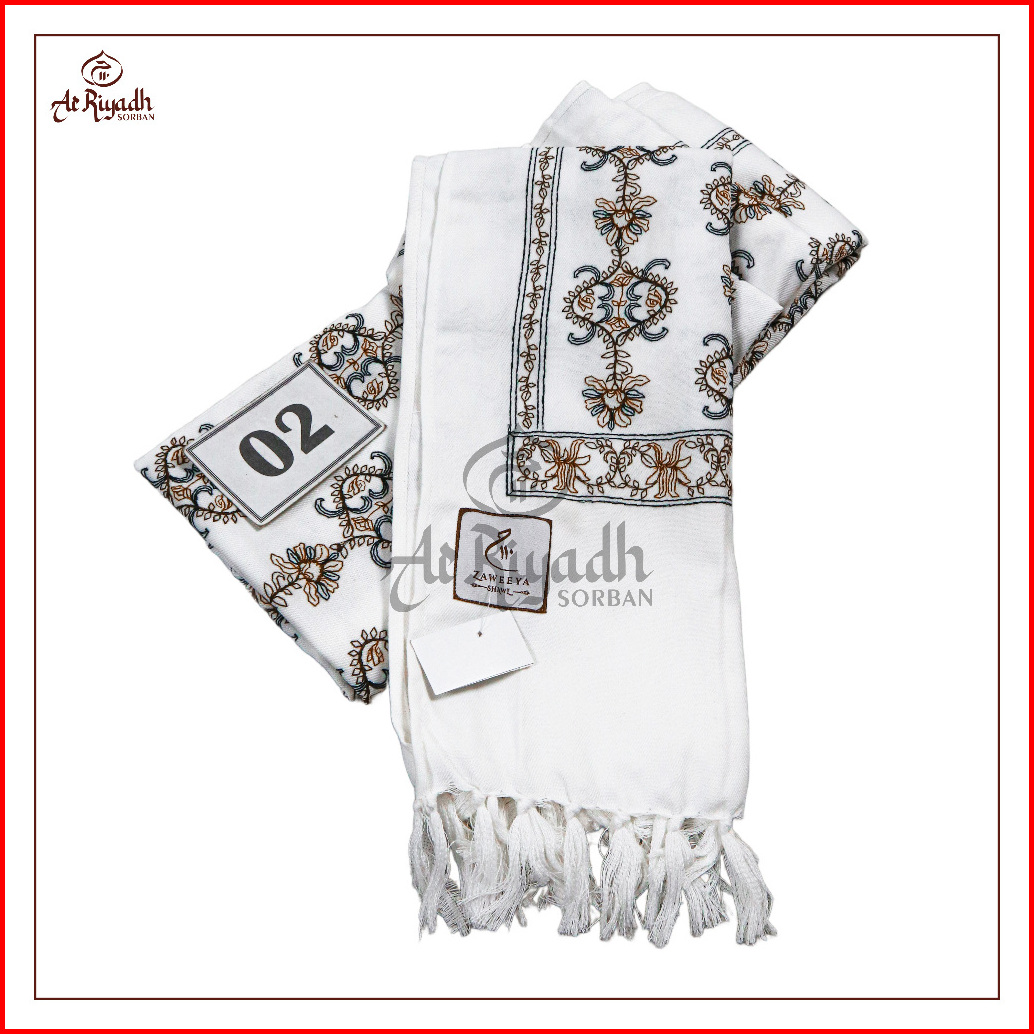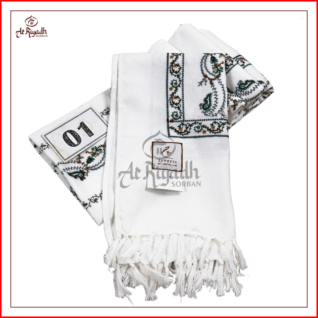 Sorban Kashmiri Zaweeya Ry110a Putih Full Motif Sulam