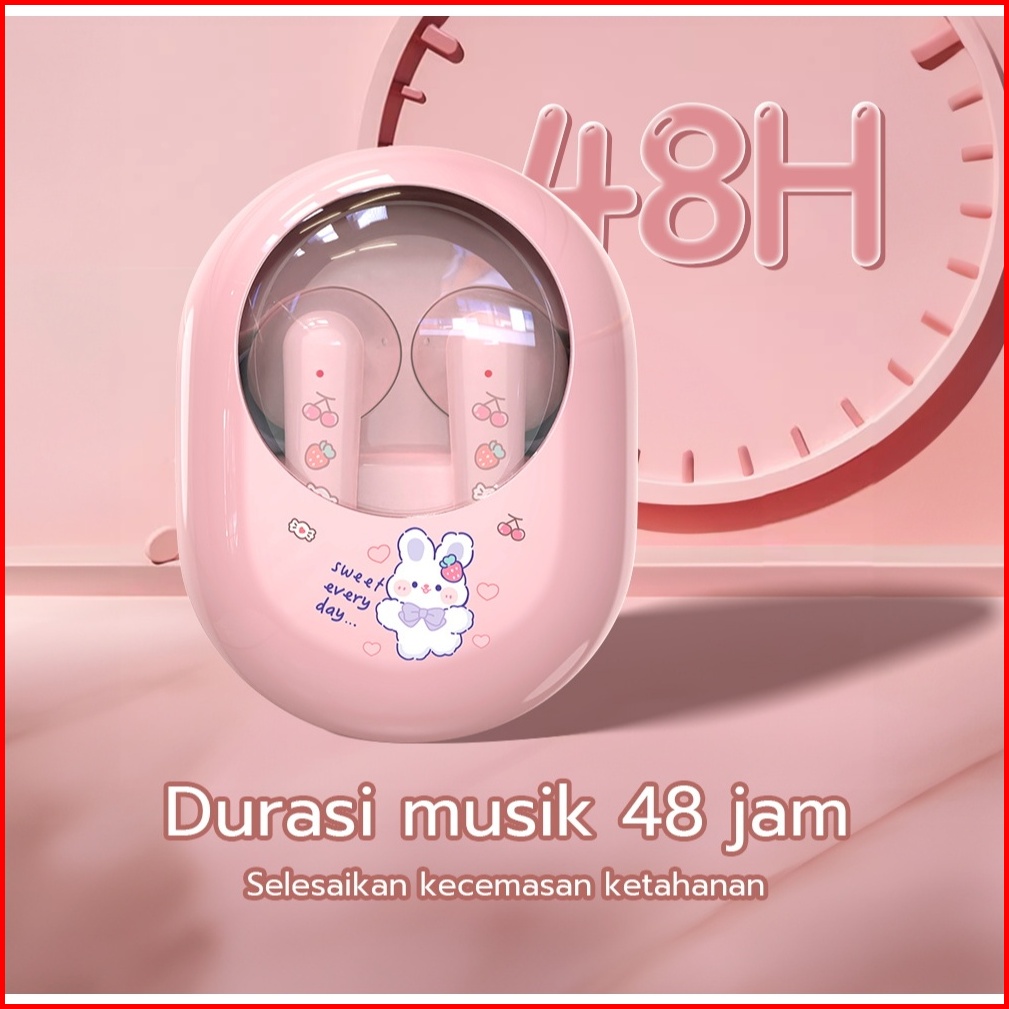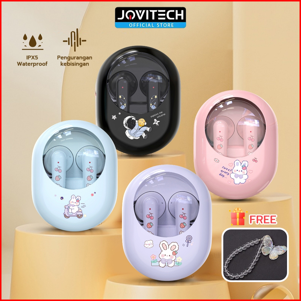 Jovitech Headset Bluetooth 5.3 Enc Peredam Kebisingan Tws Karakter Lucu 100 Ori Casing Transparan Suara Hifi Stereo Supe