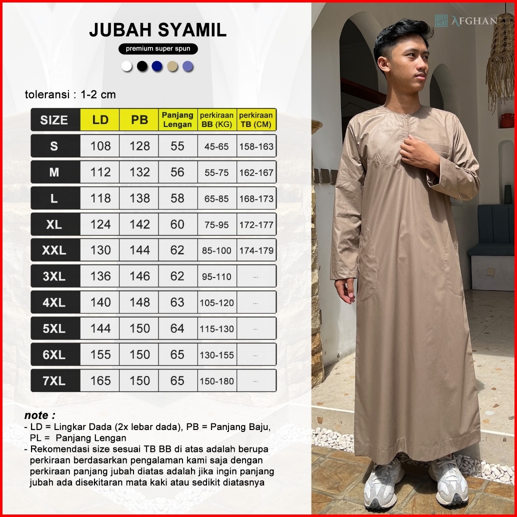 Afghan Jubah Syamil Model Jubah Kerah Oblong Tanpa Kerah Type Lengan Panjang Polos Non-manset Bahan Premium Super Spun W