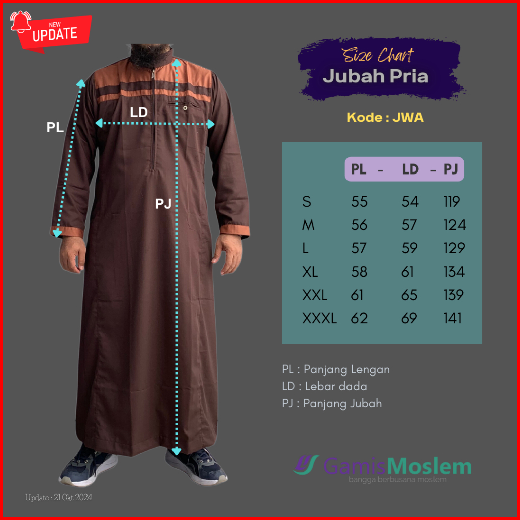 Jubah Pria Lengan Panjang Jwa Size S - Xxxl Katun Toyobo