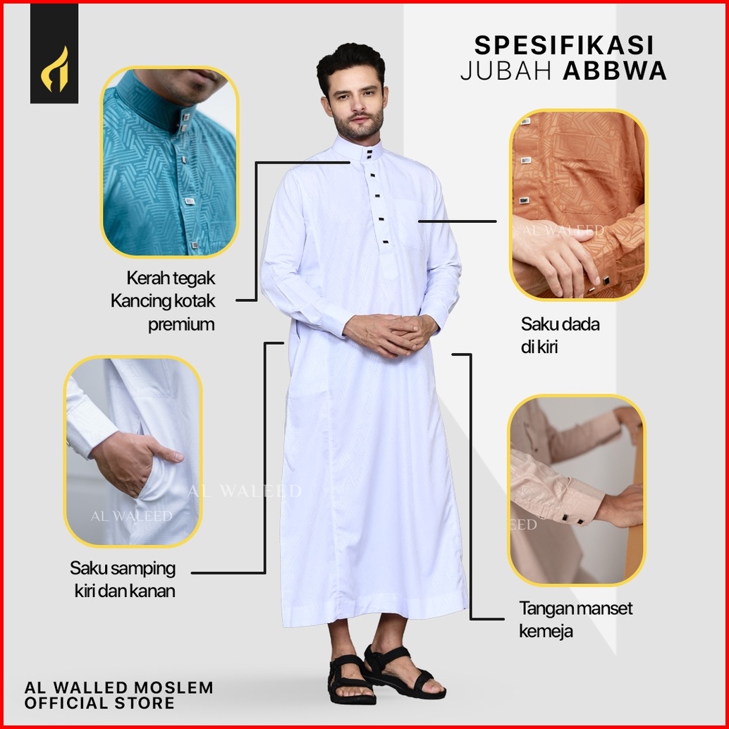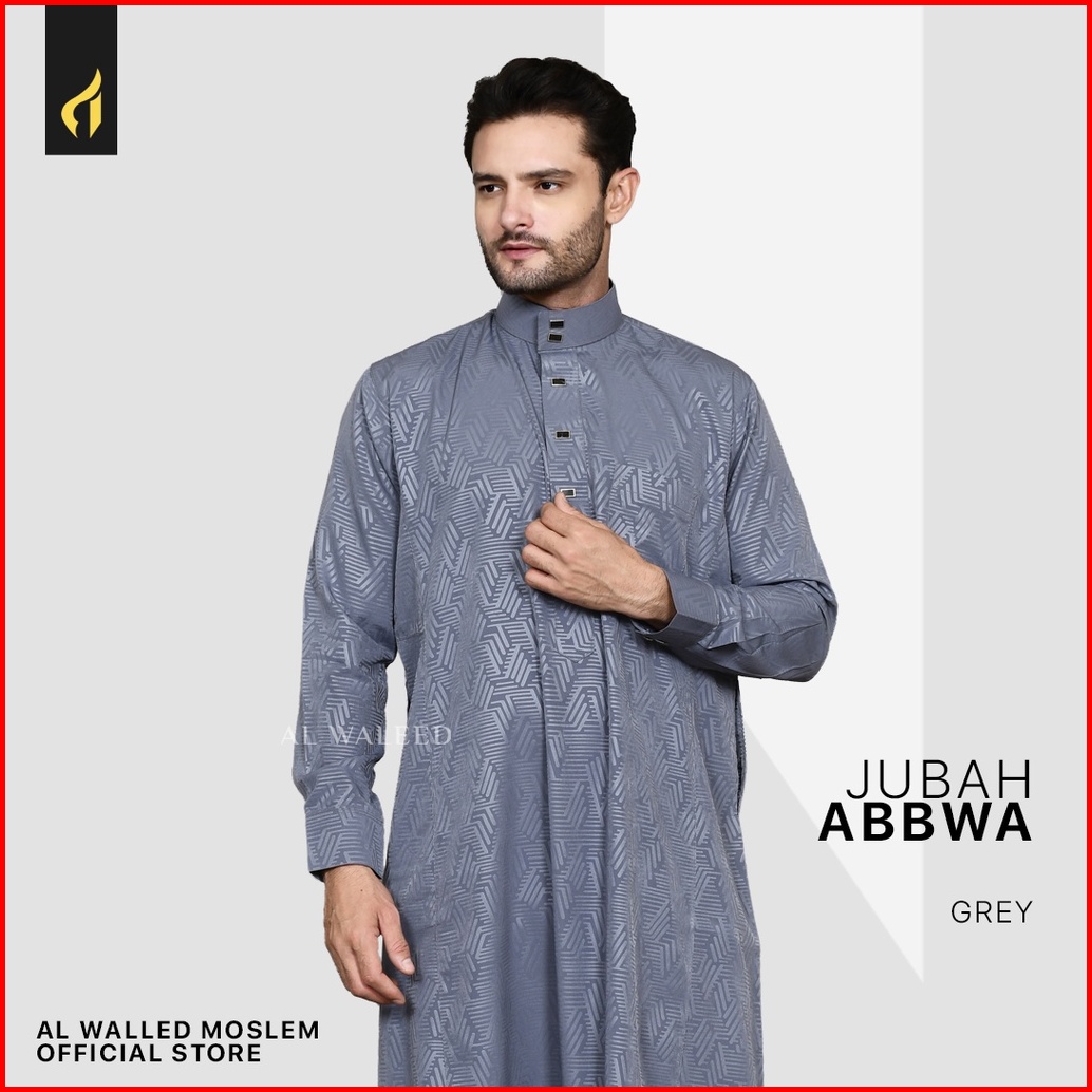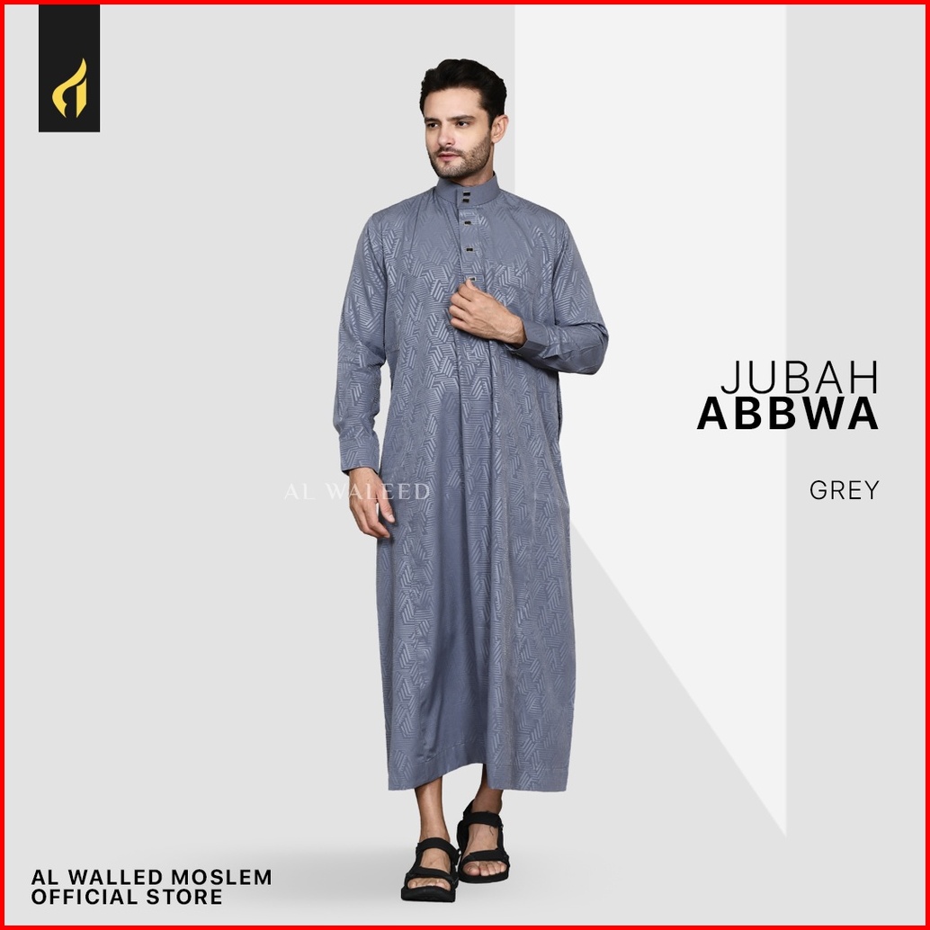 Al Waleed Moslem Jubah Pria Abbwa Motif Embos Warna Abu