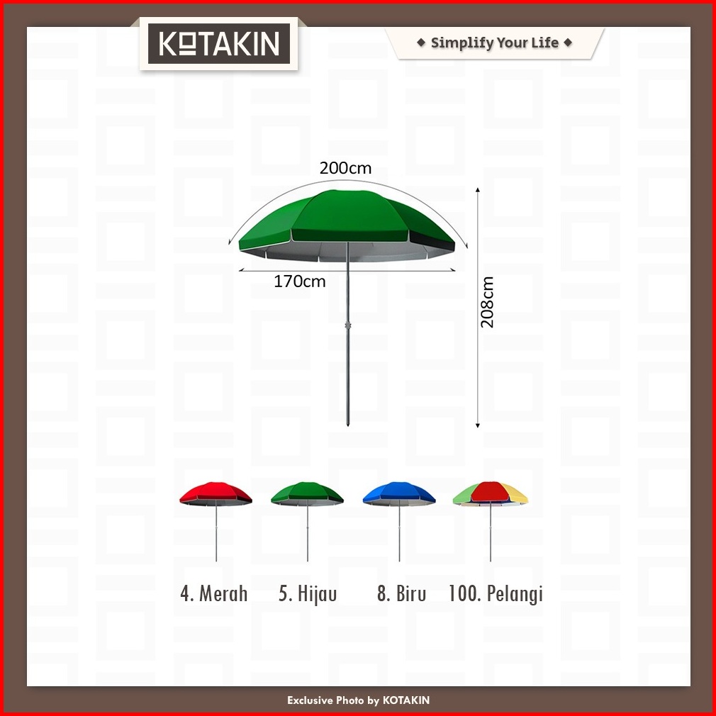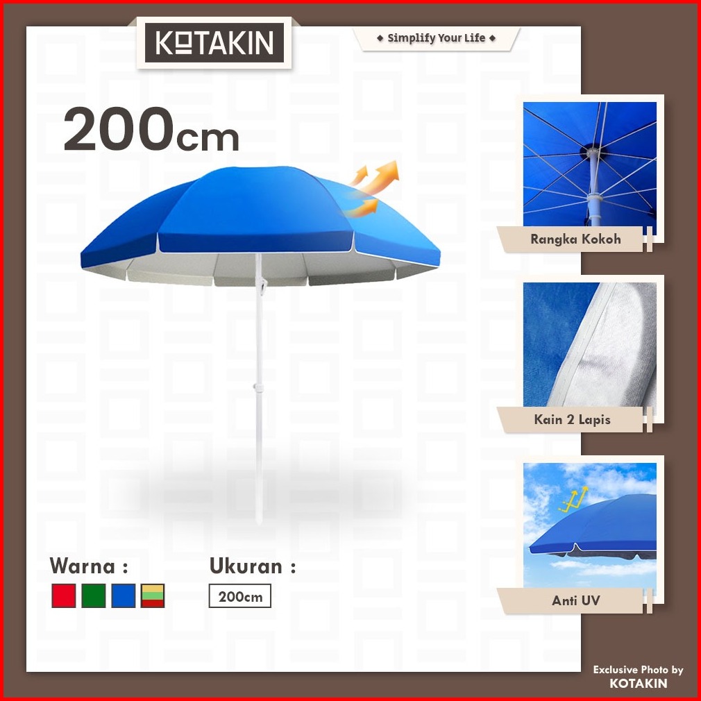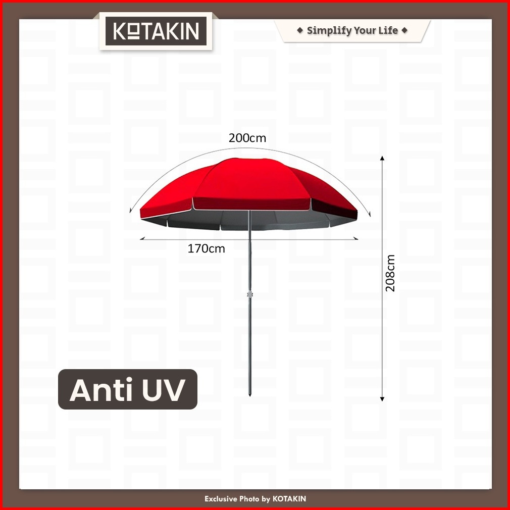 Kotakin Payung Tenda Jumbo Diameter 200cm Bazaar Event Pantai Cafe Outdoor Tenda Booth Jualan Anti Uv