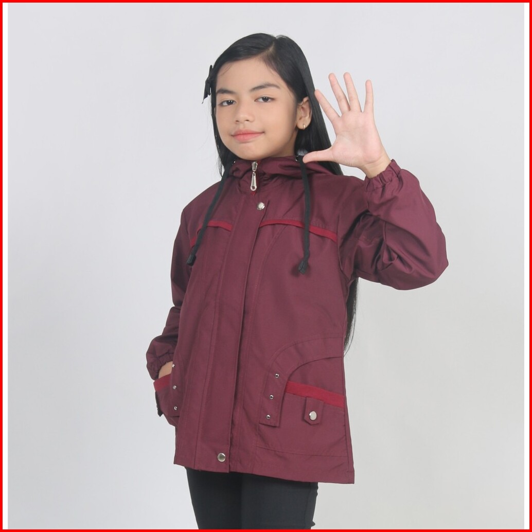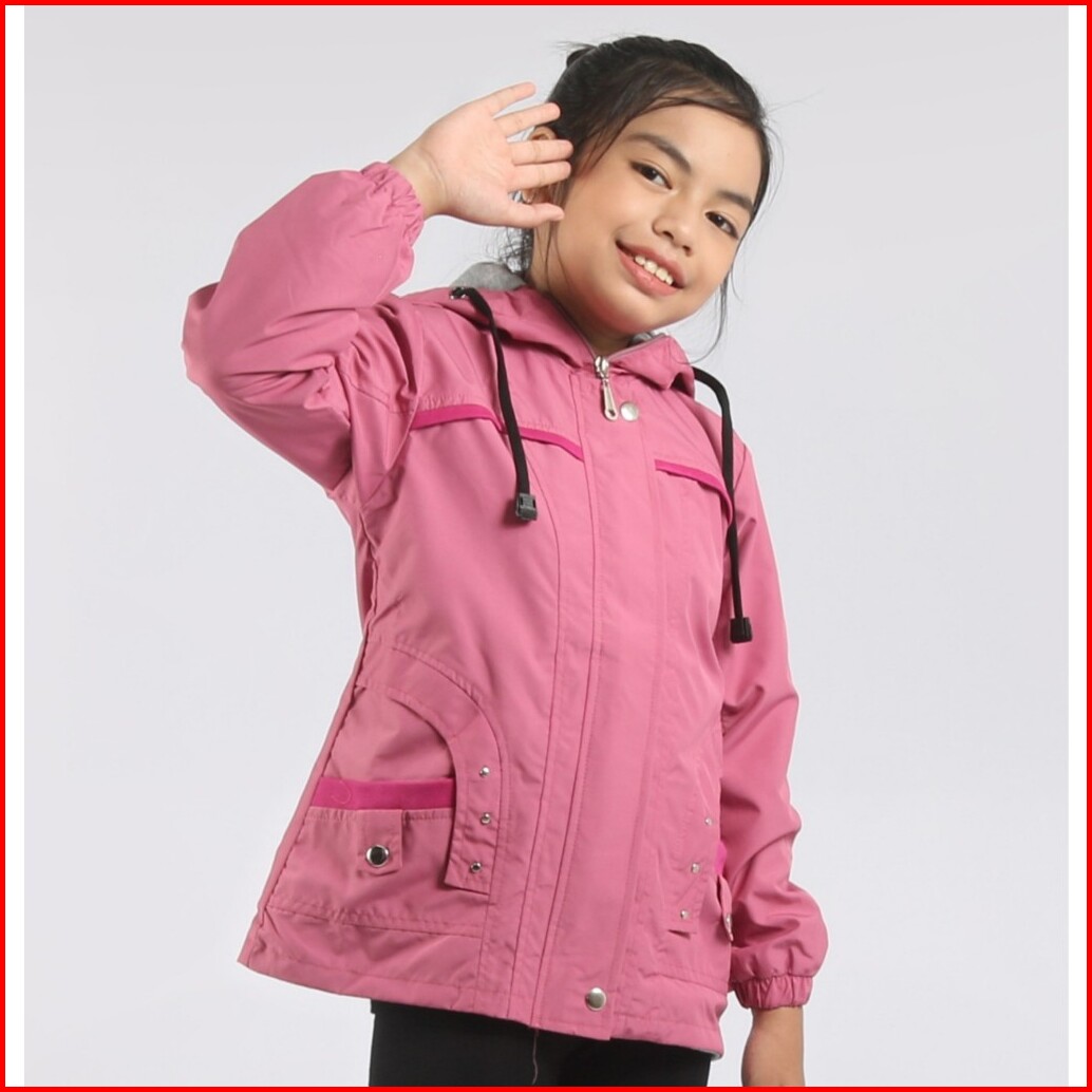 Jaket Anak Perempuan 3 - 12 Tahun Parasut Waterproof Windproof Bahan Tebal
