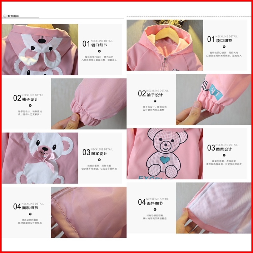 Jaket Hodie Anak Bear Perempuan Dan Laki Import 1 - 13 Tahun