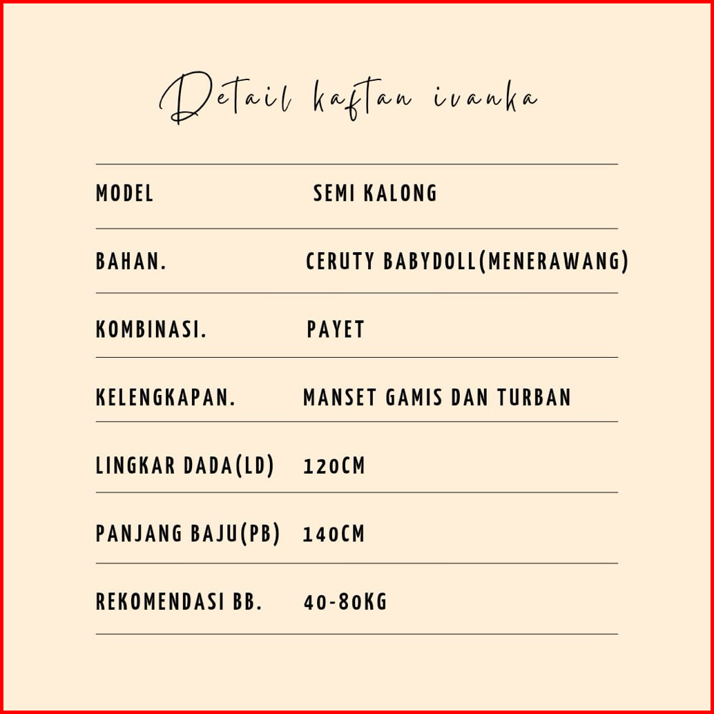 Kaftan Ivanka By Naufal Kaftan Full Payet Free Inner Gamis Dan Turban