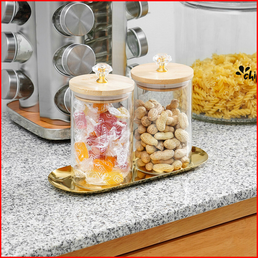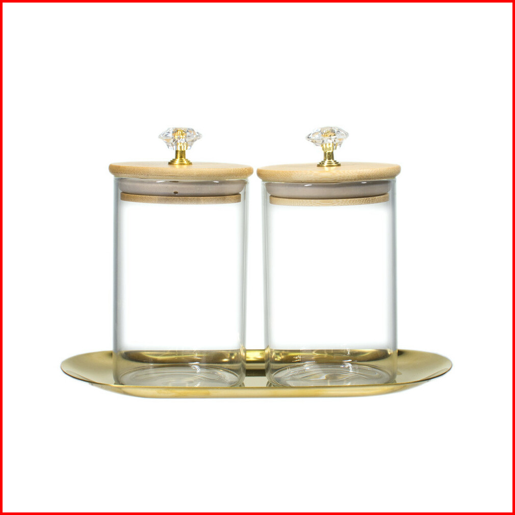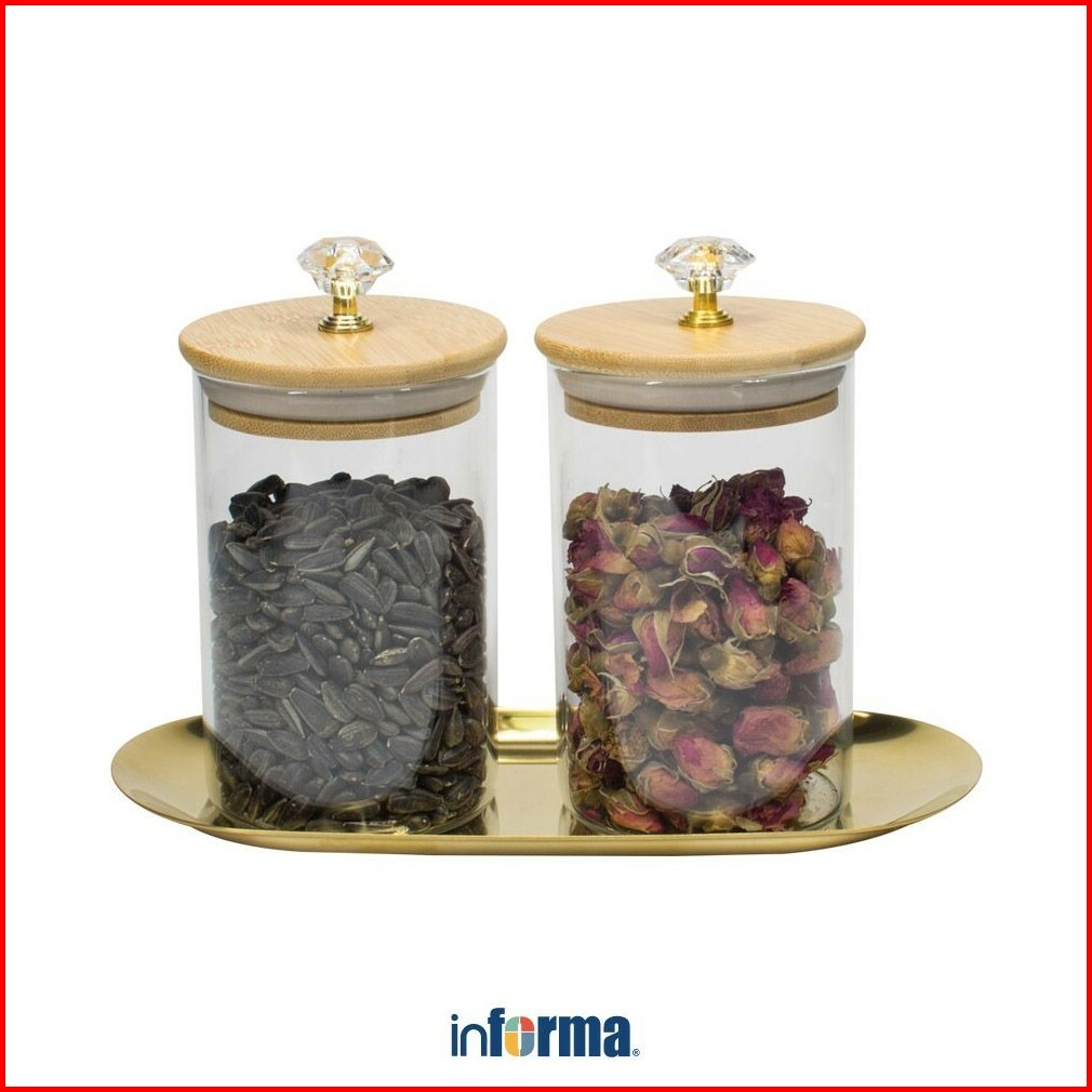 Informa Set 2 Pcs Hyacinth Stoples Kaca Dengan Nampan Jar Tempat Simpan Snack Dan Permen Setoples Toples Beling Serbagun
