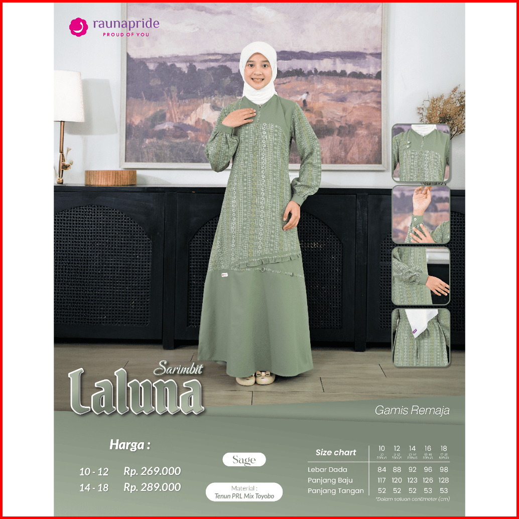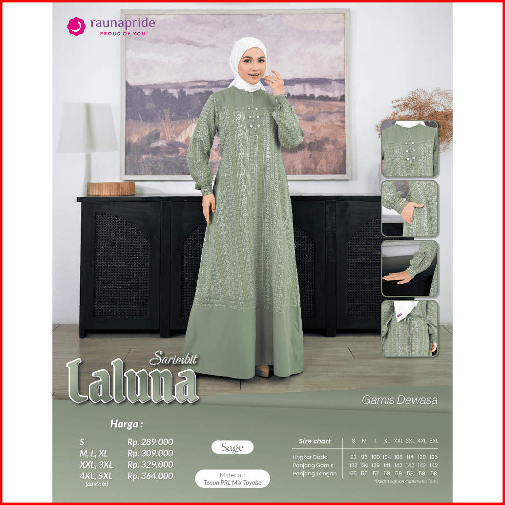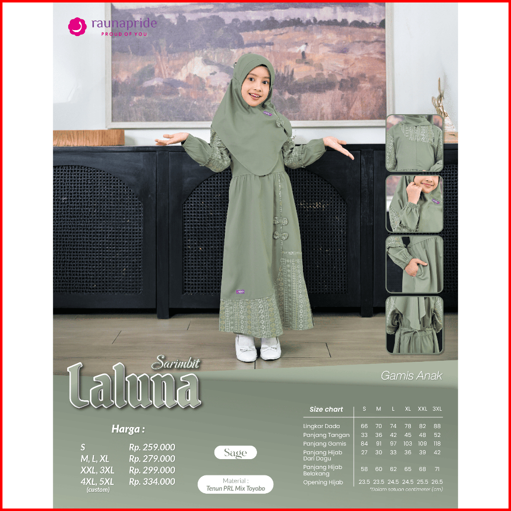 Sarimbit Keluarga 2026 Sarimbit Raunapride Terbaru 2026 Laluna Sage Gamis Couple Keluarga Ayah Ibu Anak Simple Elegan Ke