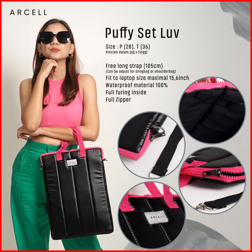 Arcell - Puffy Laptop Set Luv L Tas Laptop 13-15 6inc I Tas Laptop Jinjing Free Talpan