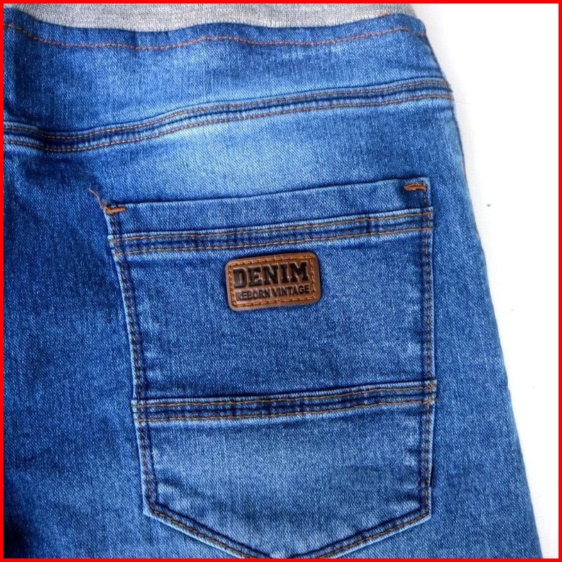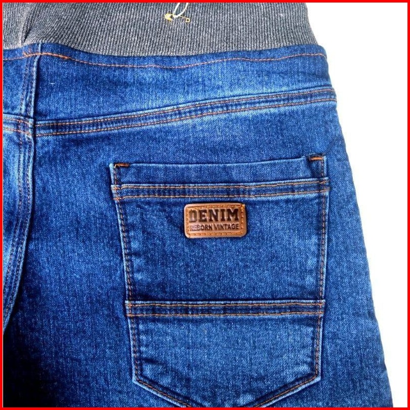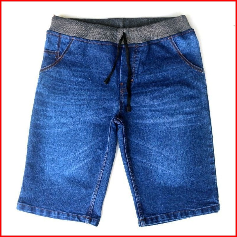 Celana Pendek Pria Jeans Kolor Rip Pinggang Karet