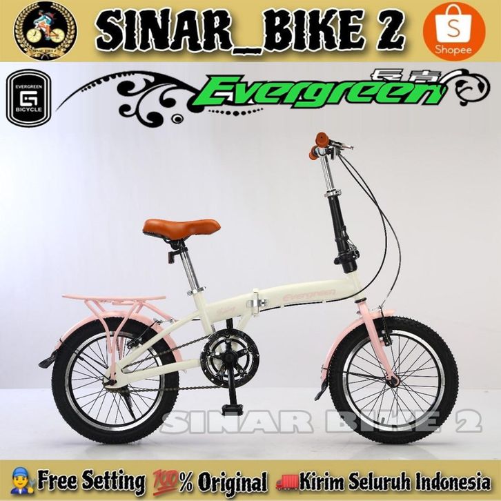 Sepeda Lipat Dewasa & Anak EVERGREEN Ukuran 16 Inch Boncengan Singel Speed Terlaris