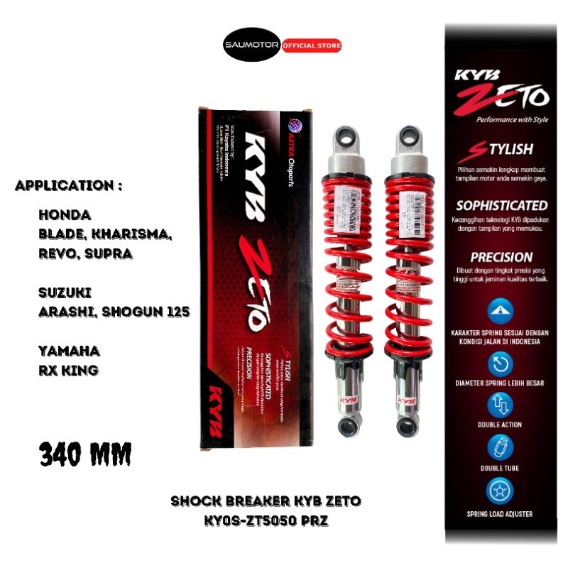 Shock breaker belakang KYB Zeto 340 mm KYB ZT5050 PRZ RED Supra non tabung Official store