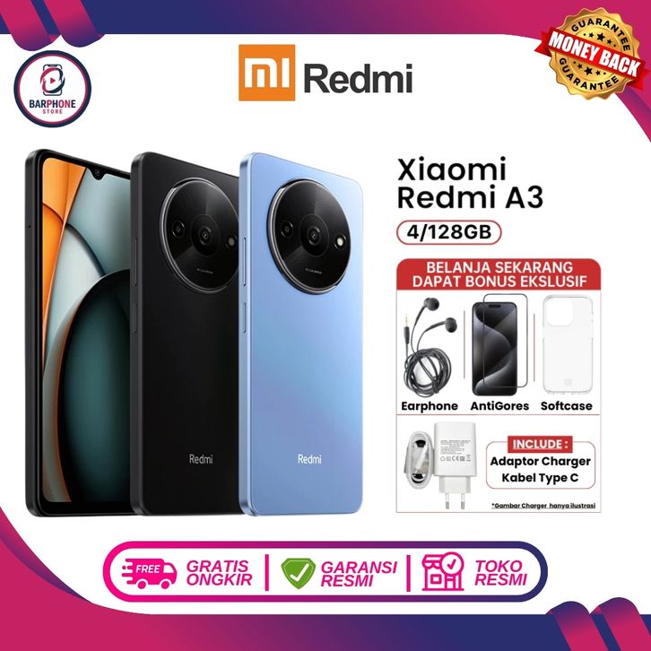 XIAOMI REDMI A3 (4GB/128GB) | LAYAR MULUZ 90 HZ | SENSOR SIDIK JARI & FACE UNLOCK | DESAIN INOVATIF [ OFFICIAL STORE ]