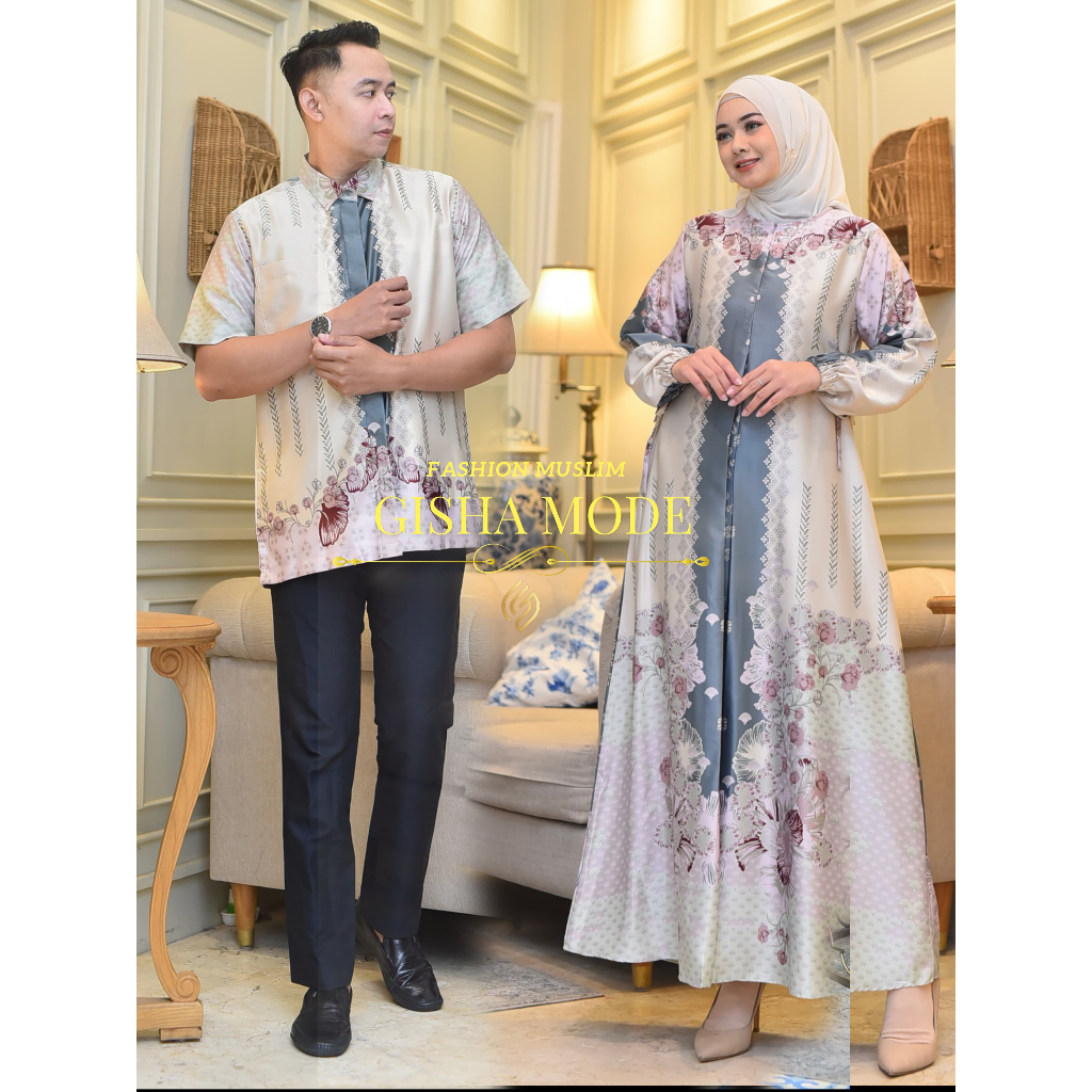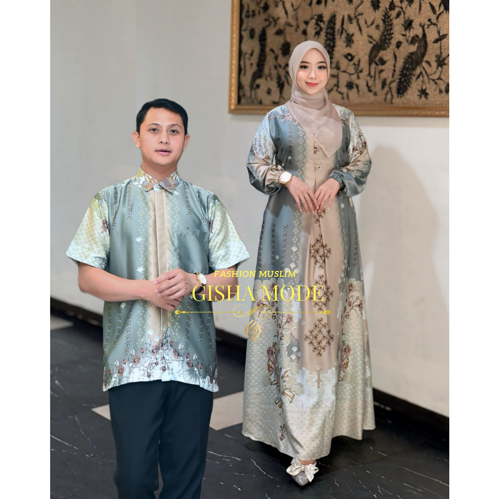 BAJU LEBARAN COUPLE KELUARGA BAJU LEBARAN 2026 GAMIS MOTIF BUNGA MEWAH BESTSELLER COUPLE KEMEJA DAN GAMIS BAHAN SILK