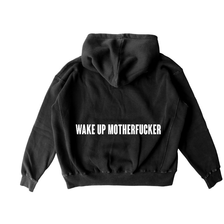 Hoodie Boxy Zipper Ahha FROM UNA Hoodie Boxy 330 Gsm Reflektif Nyala - Wake Up Motherf*cker | Oversized Hoodie Black