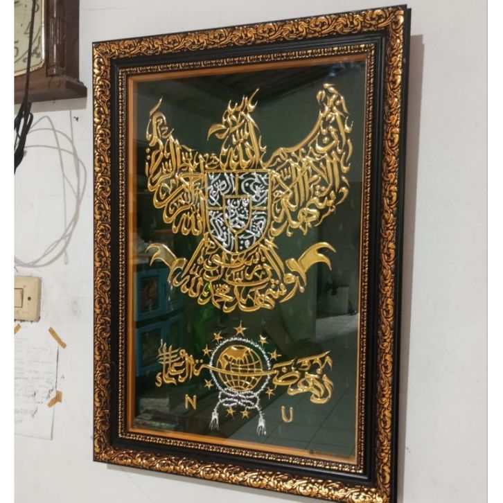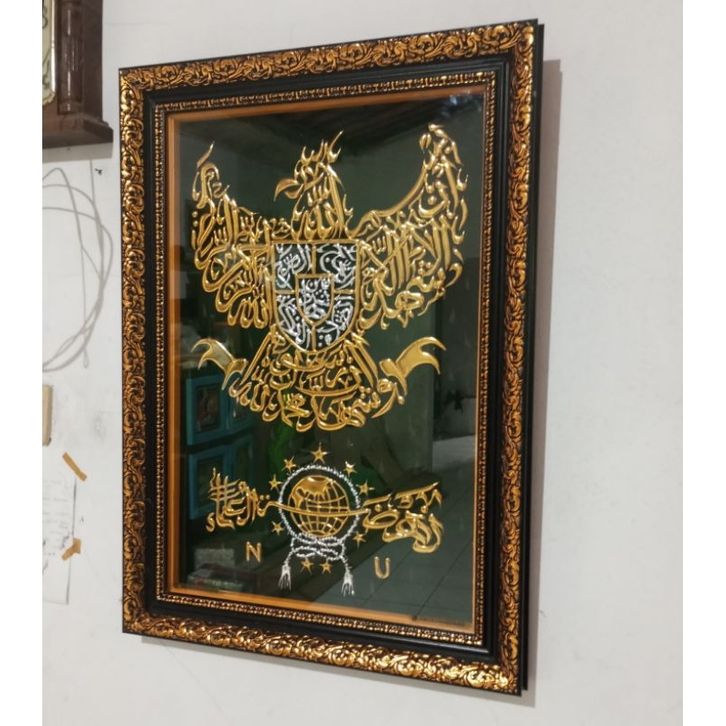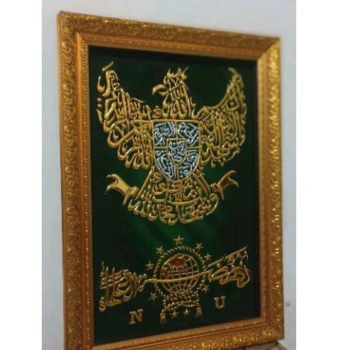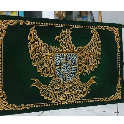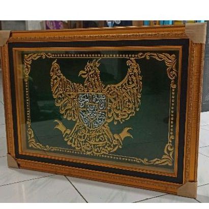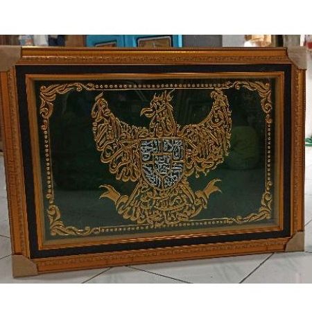 HIASAN DINDING KALIGRAFI PRADA LEM TEMBAK TIMBUL SAHADAT BENTUK BURUNG GARUDA