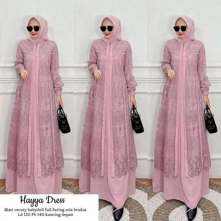 Gamis Hayya Wanita Dress Mix Brukat Busana Wanita Muslim Polos Ngetren Bahan Ceruty Babydoll Mix Brukat Size M L XL XXL