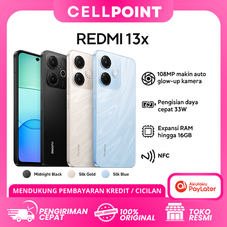 HP XIAOMI REDMI 13 (8GB/128GB) (8GB/256GB) KAMERA 108 MP SUPER JERNIH MEDIATEK G91 ULTRA 33W FAST CHARGING ORIGINAL
