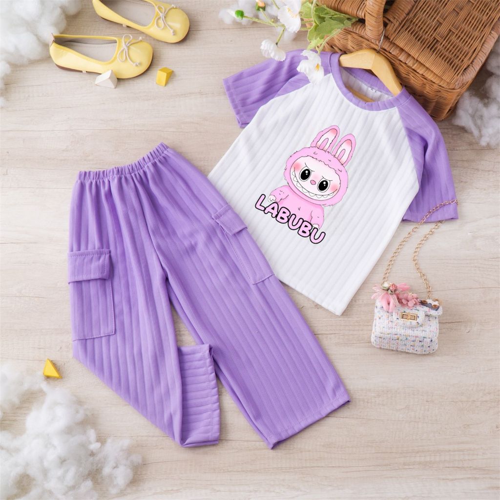SETELAN ANAK LABUBU KNIT CARGO PEREMPUAN USIA 1-8 TAHUN MLXLXXL