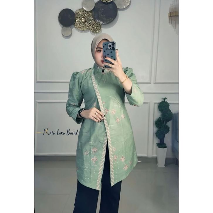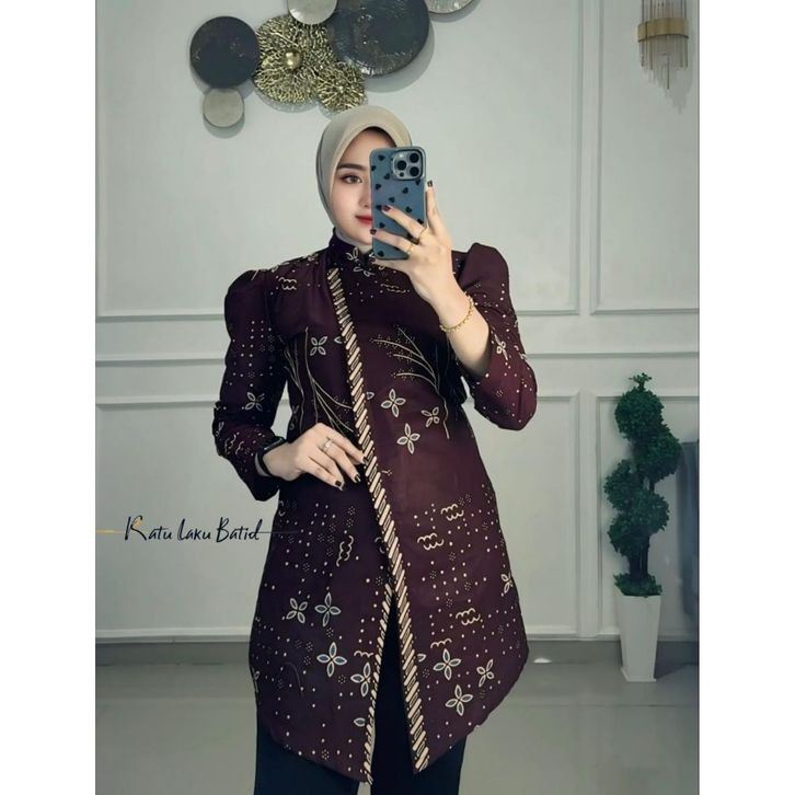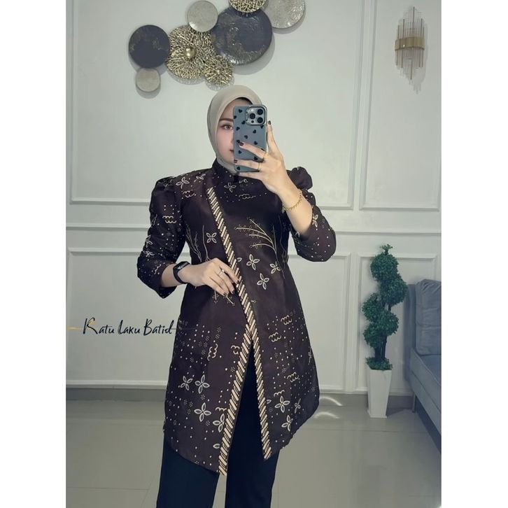 BAJU BATIK WANITA / ATASAN BATIK WANITA MODERN LENGAN PANJANG PUFFY BLOUSE MODEL KEBAYA JANGGAN BY RATU LAKU BATIK