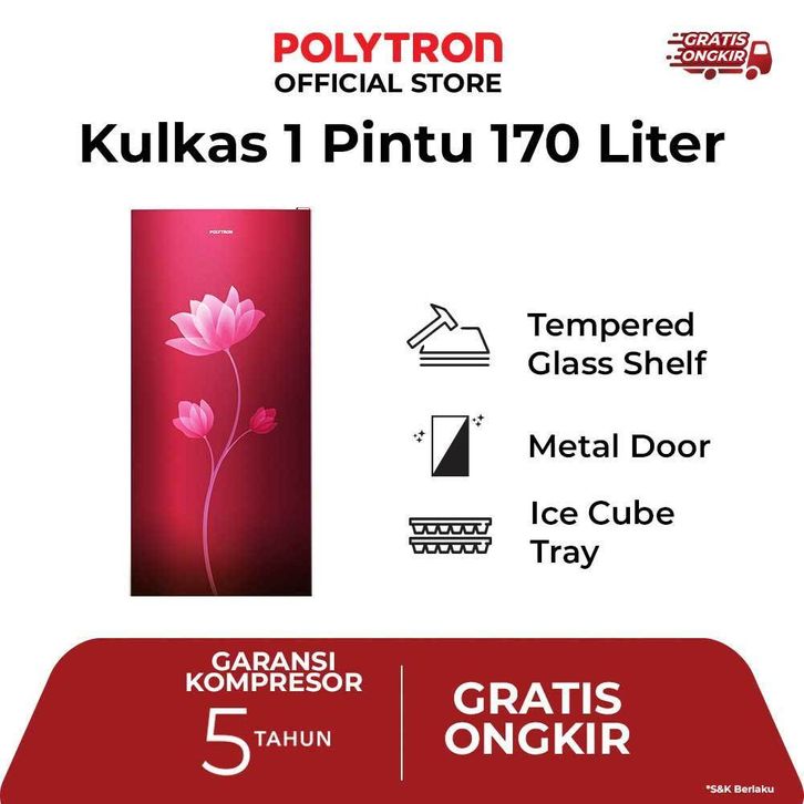 POLYTRON Kulkas 1 Pintu Metallic Series 170 liter PRB 179R