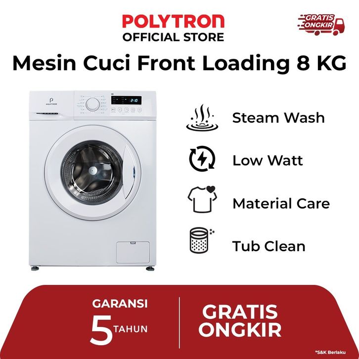 POLYTRON Mesin Cuci Front Loading Wonderwash 8 KG - PFL 8051