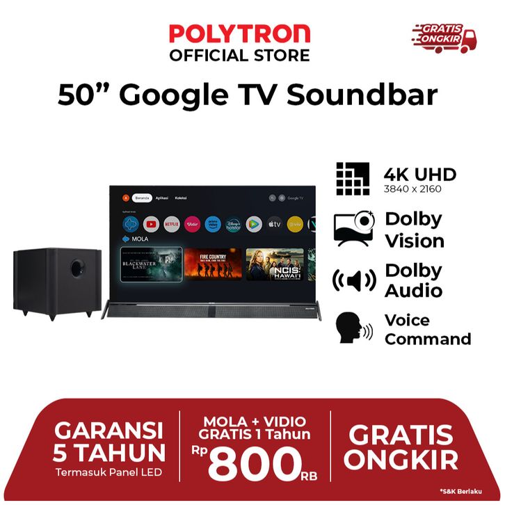 POLYTRON 4K UHD Smart Cinemax Soundbar Google TV 50 Inch PLD 50BUG5058