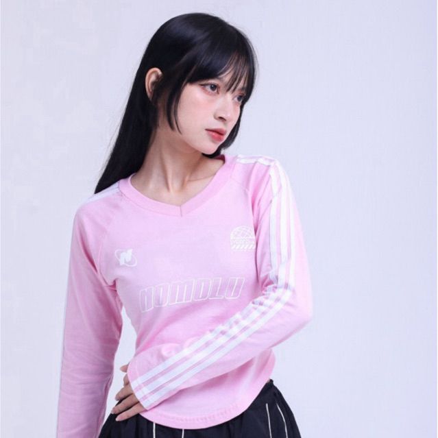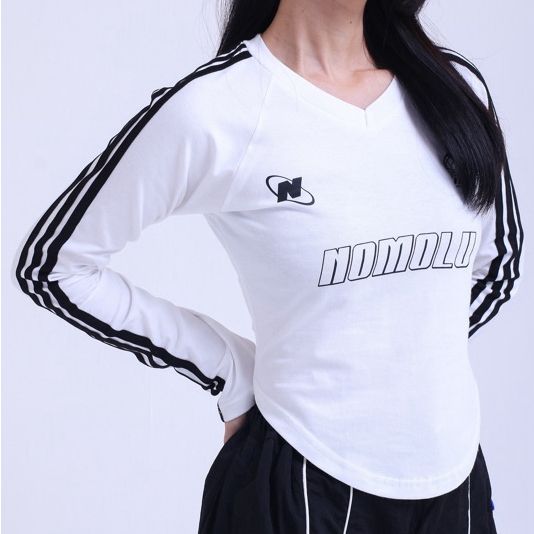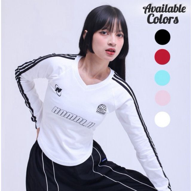Atasan Kaos Wanita Croptop Long Sleeve Baju Wanita Lengan Panjang V-Neck - Casual, Basic, Polos, Kaos, Stripe