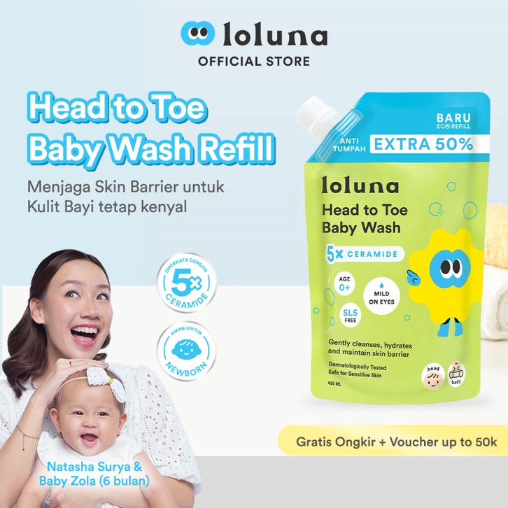 Loluna Head to Toe Wash 450ml Refill - Sabun Sampo Mandi Perawatan Kulit Bayi dan Anak / Sabun untuk Newborn/ 5x Ceramid