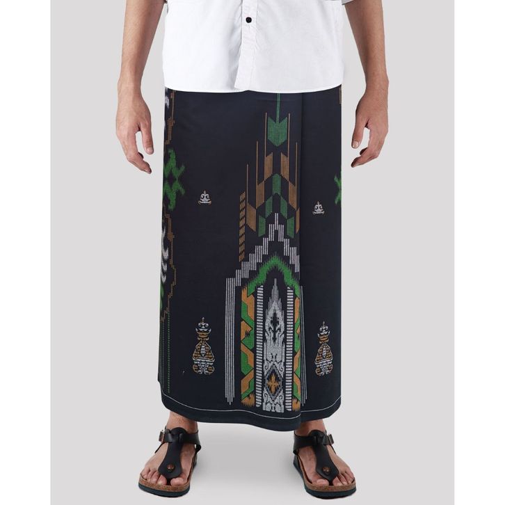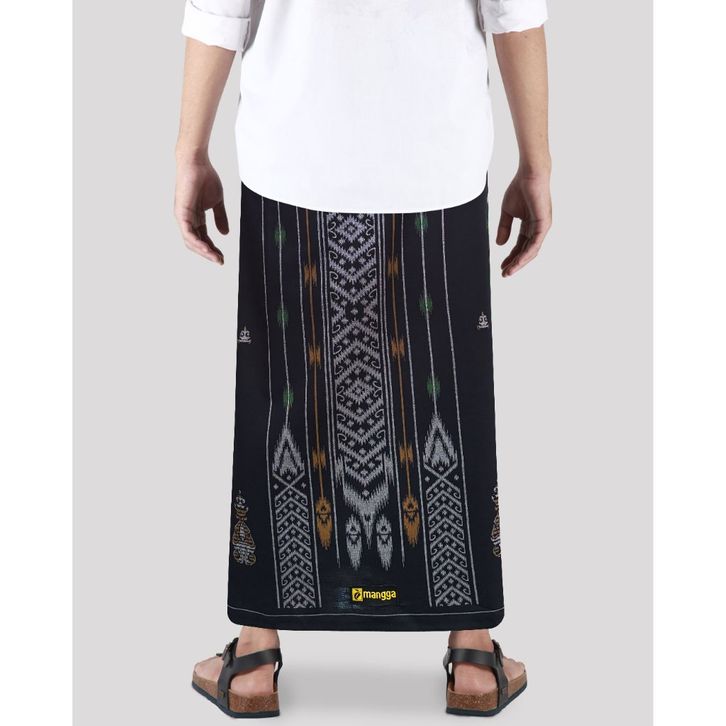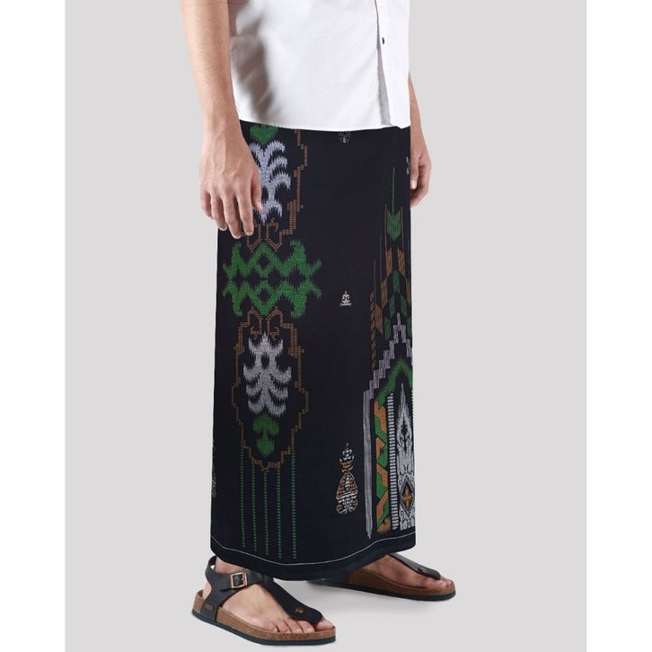 Sarung Mangga Kembang DGW Hitam Motif Hijau Orange GKDGW48