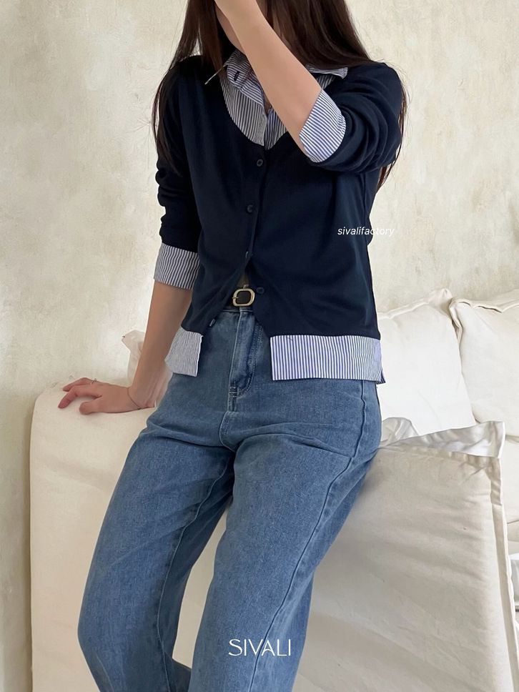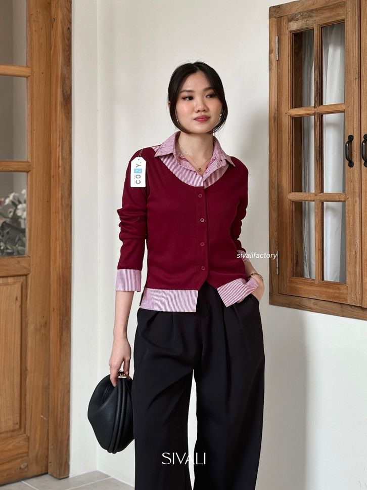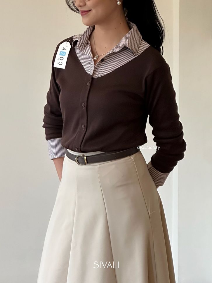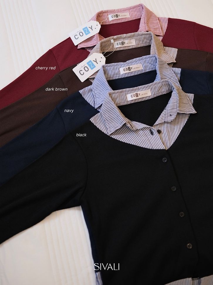 Atasan Wanita Kemeja Lengan Panjang | 075 Yuki Stripe Collar - Stripe Layer Shirt