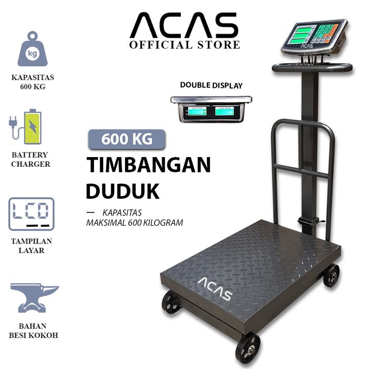Acas Tcs 600Kg / 4Kg Timbangan Duduk Digital Single Double Display Pagar Lipat Barang
