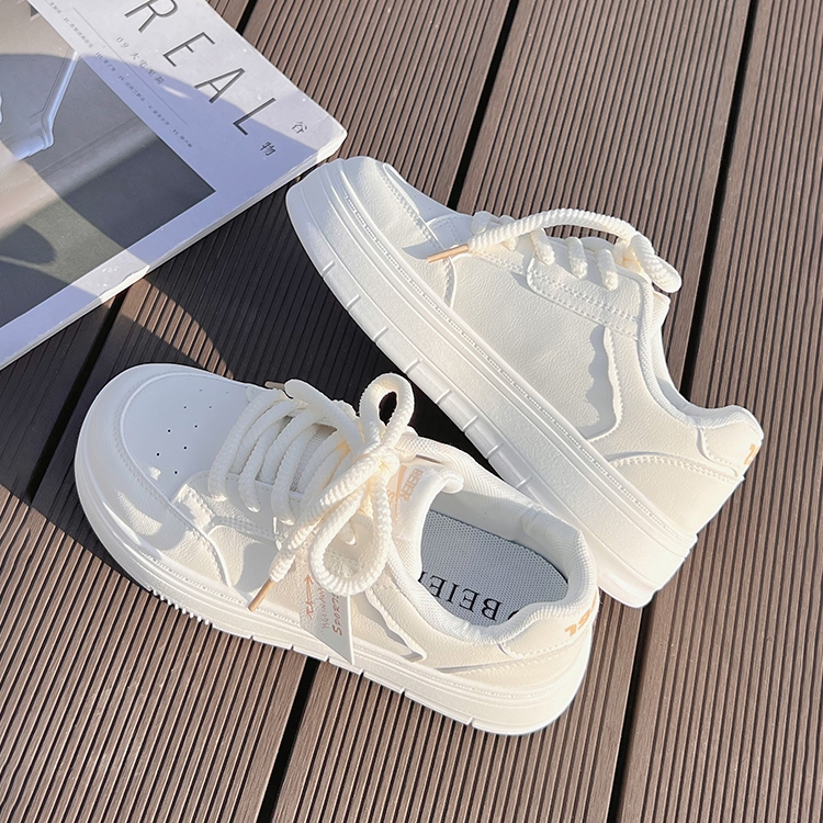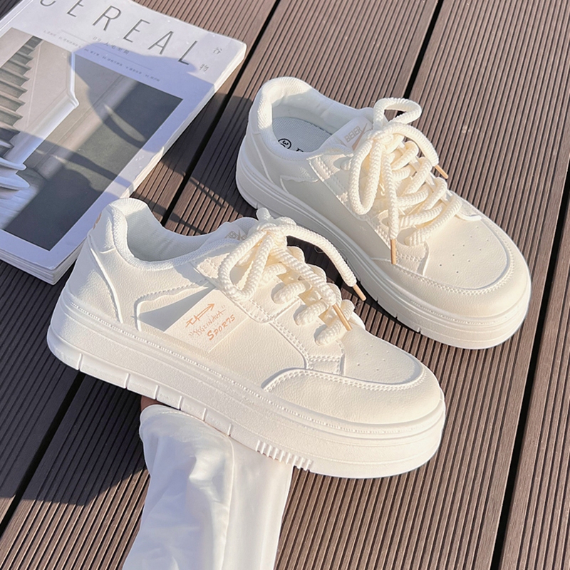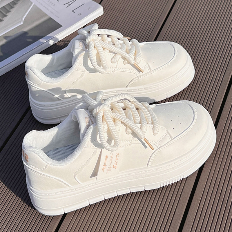 Sepatu Kets Simpel Sneakers Olahraga Putih Cream Flat Casual Korea Fashion Wanita Perempuan Tali Murah Import