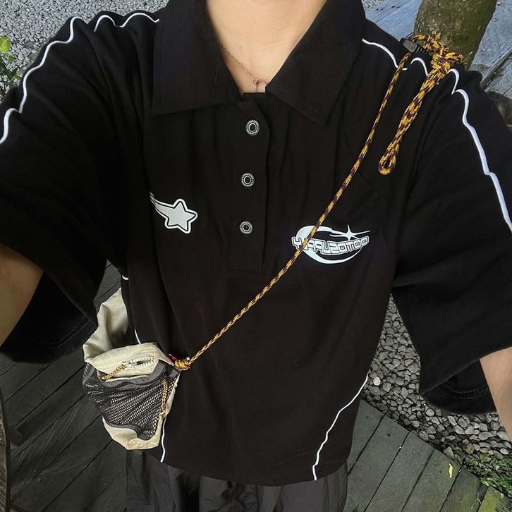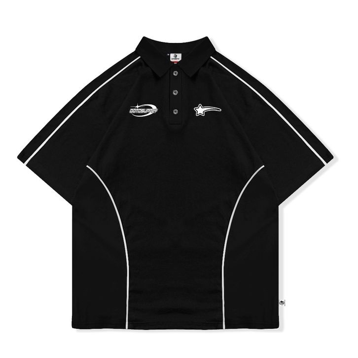 Kaos Oversize Polo Pria dan Wanita Rugby Shirt V.4 WIld Star Black Grey