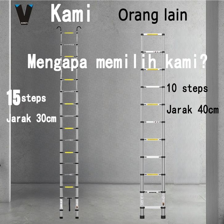 Boweiti Tangga Teleskopik Aluminium 2.6m-8m Berbagai Spesifikasi