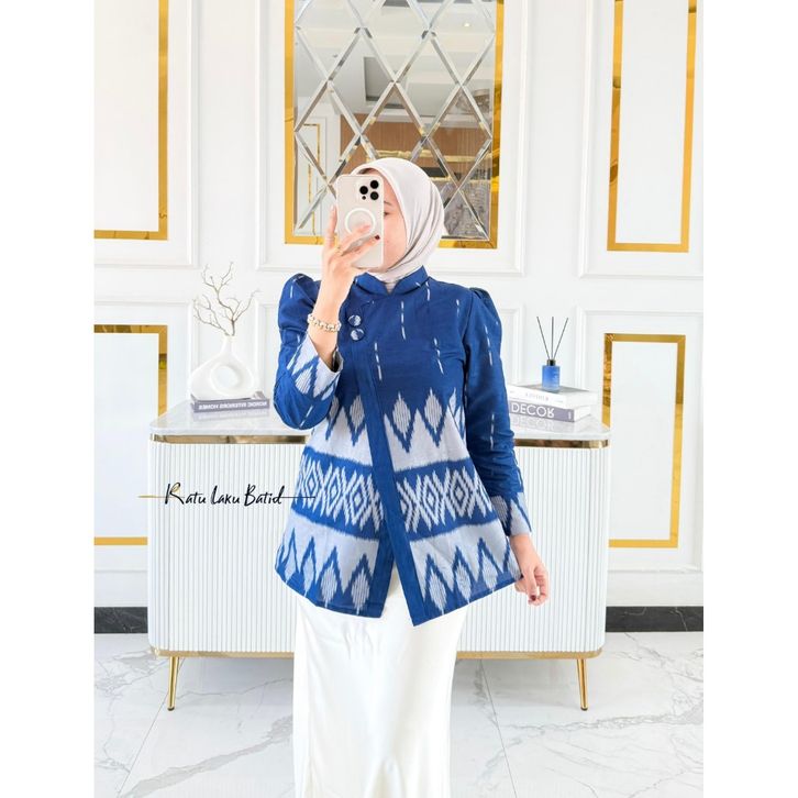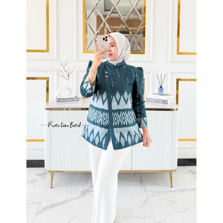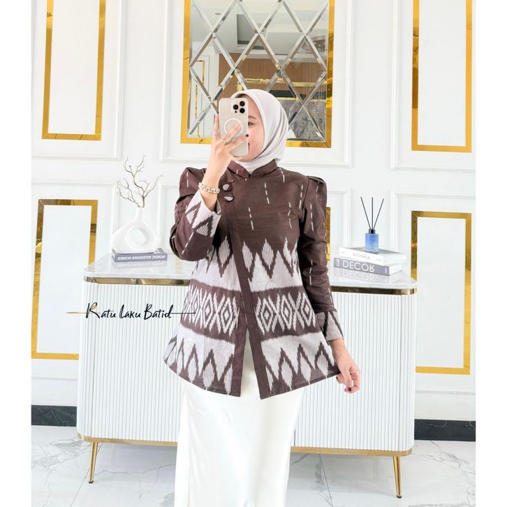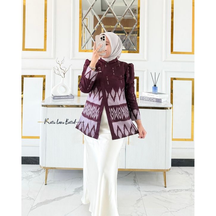 BAJU BATIK WANITA / ATASAN BATIK WANITA MODERN LENGAN PANJANG PUFFY BLOUSE EDORA MODEL KEBAYA JANGGAN BY RATU LAKU BATIK