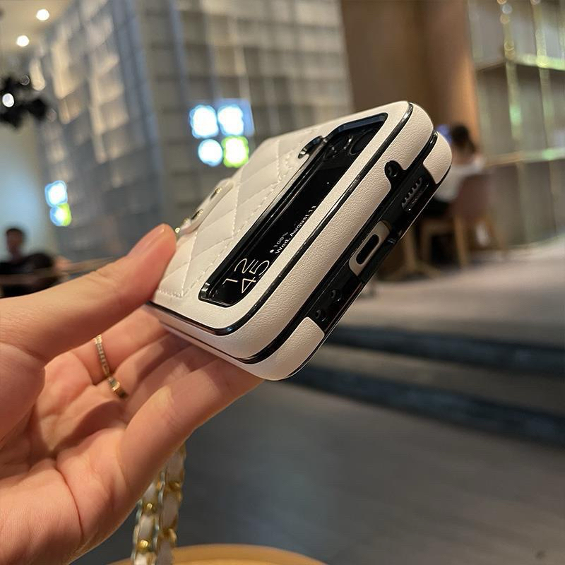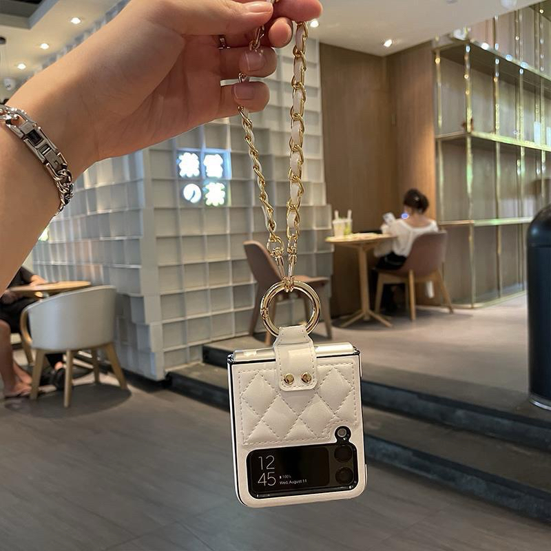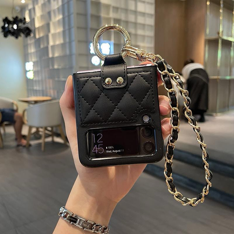 [ RETROCASE ] QUILT LEATHER SOFT CASE LEATHER MATERIAL WITH CHAIN HAND GRIP LANYARD SUITABLE FOR SAMSUNG ZFLIP 3 4 5 6