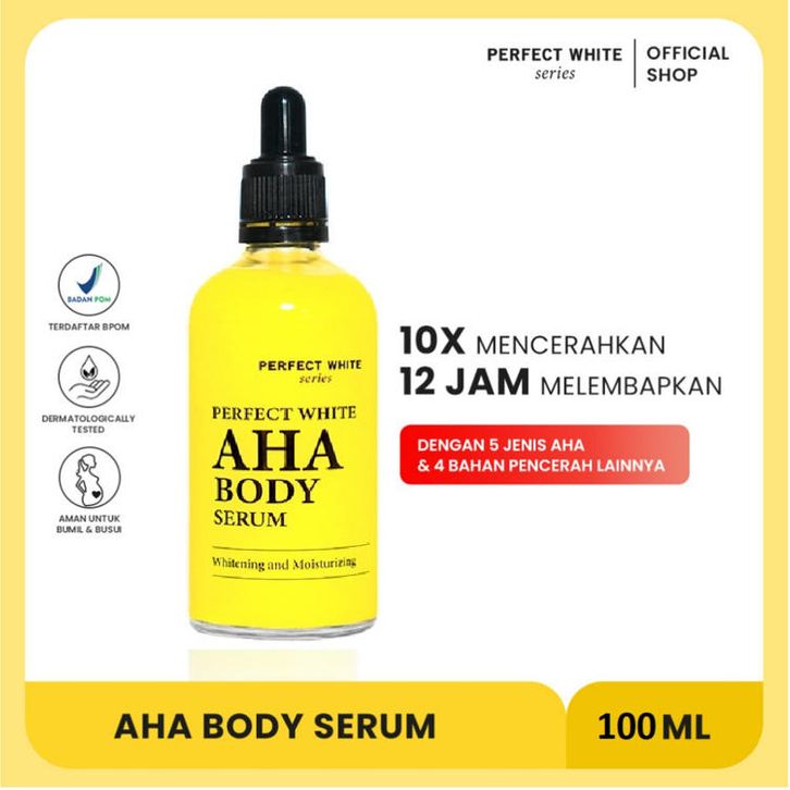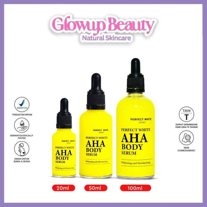 Perfect White AHA Body Serum 50ML Whitening & Moisturizing / GLOWUP BEAUTY SKINCARE / PAKET MAKEUP SET TERMURAH