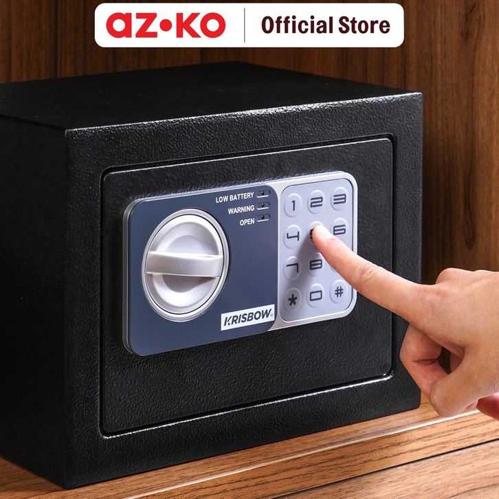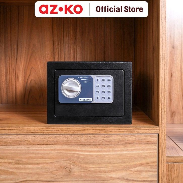 AZKO Krisbow 23x17x17 cm Brankas Besi 17nef 1/3mm - Hitam Steel Safe Perangkat Keamanan Safety Box Home Improvement