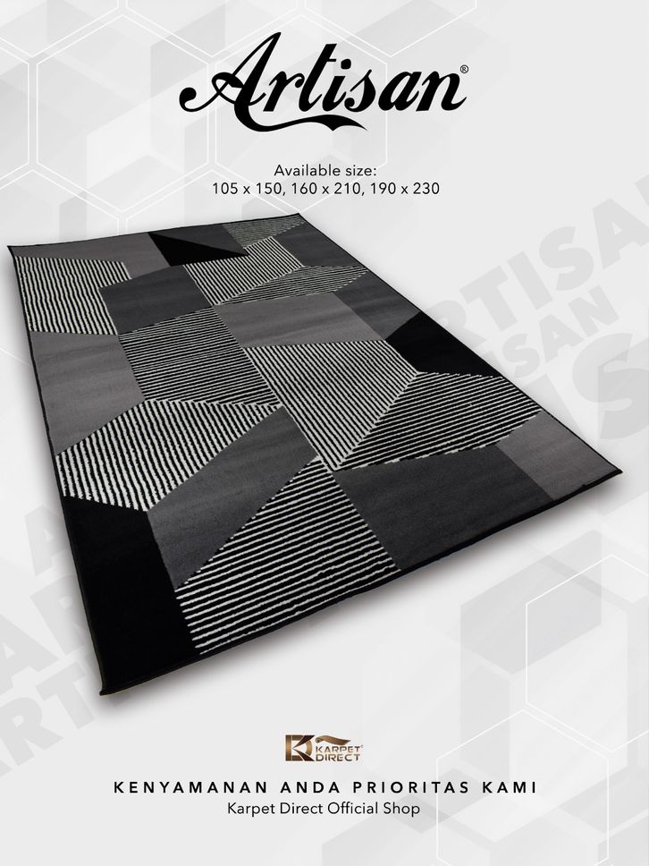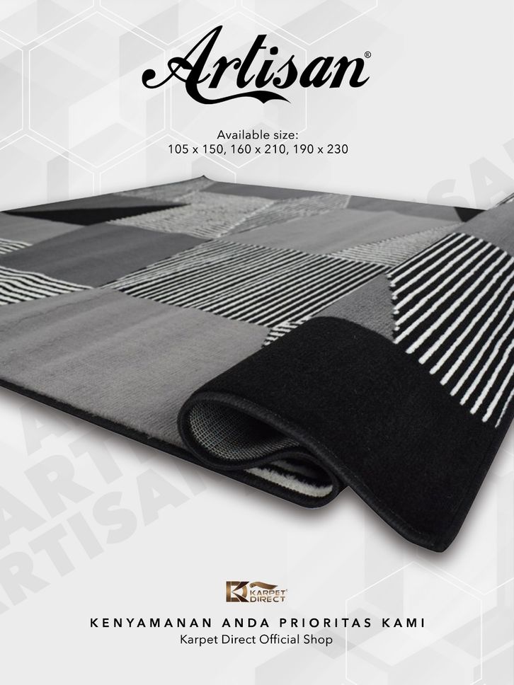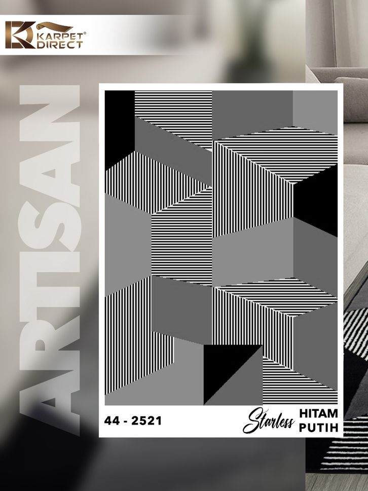 [Karpet Direct] Artisan Karpet Aesthetic Karpet Ukuran 160x210 Cm (Hitam Putih) – Kode 43-2521 | Karpet Korea Estetik
