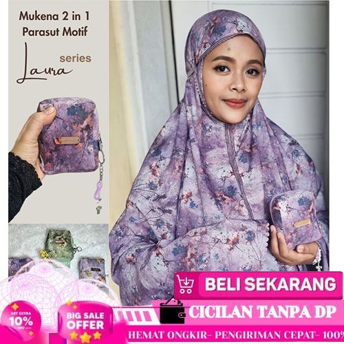 IBADAH MUKENA TRAVEL MINI DEWASA 2 IN 1 LASERCUT PARASUT MOTIF ELEGAN - SUNFLO-GREENTEA