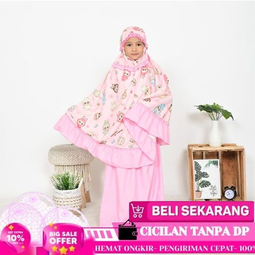 IBADAH MUKENA ANAK VIRAL LABUBU PINK,MUKENA ANAK LABUBU,MUKENA LABUBU - XS