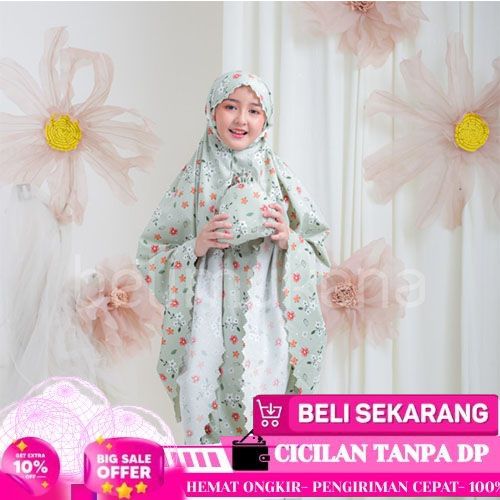 IBADAH BELIMUKENA - MUKENA ANAK KATUN 2IN1 LASER CUT BRIELLE - GREY