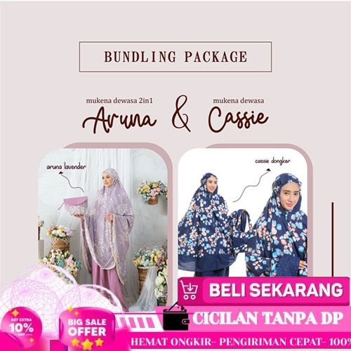 IBADAH BUNDLING PACKAGE MUKENA 2IN1 ARUNA DAN MUKENA BALI CASIE - LAVENDER+NAVY