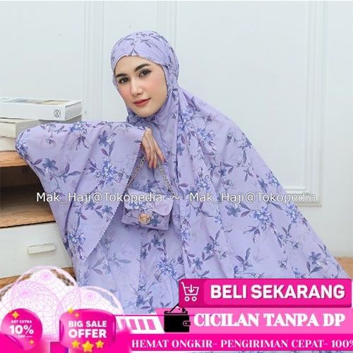 IBADAH MAK_HAJI MUKENA DEWASA PARASUT KOREA MOTIF 2 TRAVEL MINI 2IN1 SERI MOTIF + TAS SAJADAH - PK 10-BIRU