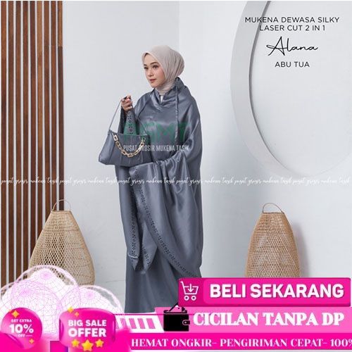 IBADAH MUKENA DEWASA SILKY LASER CUT 2 IN 1 ALANA - ABU SEMEN