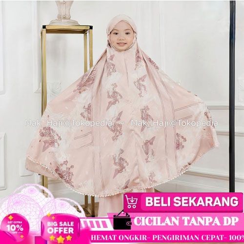 IBADAH MUKENA ANAK SILK PREMIUM 2IN1 TRAVELING MOTIF MEWAH - CREAM