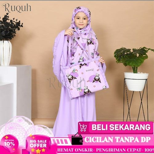IBADAH MUKENA ANAK PEREMPUAN MOTIF KUROMI 1 2 3 4 5 6 7 8 9 10 11 12 TAHUN BAHAN KATUN LUCU - MERAH MUDA, XS